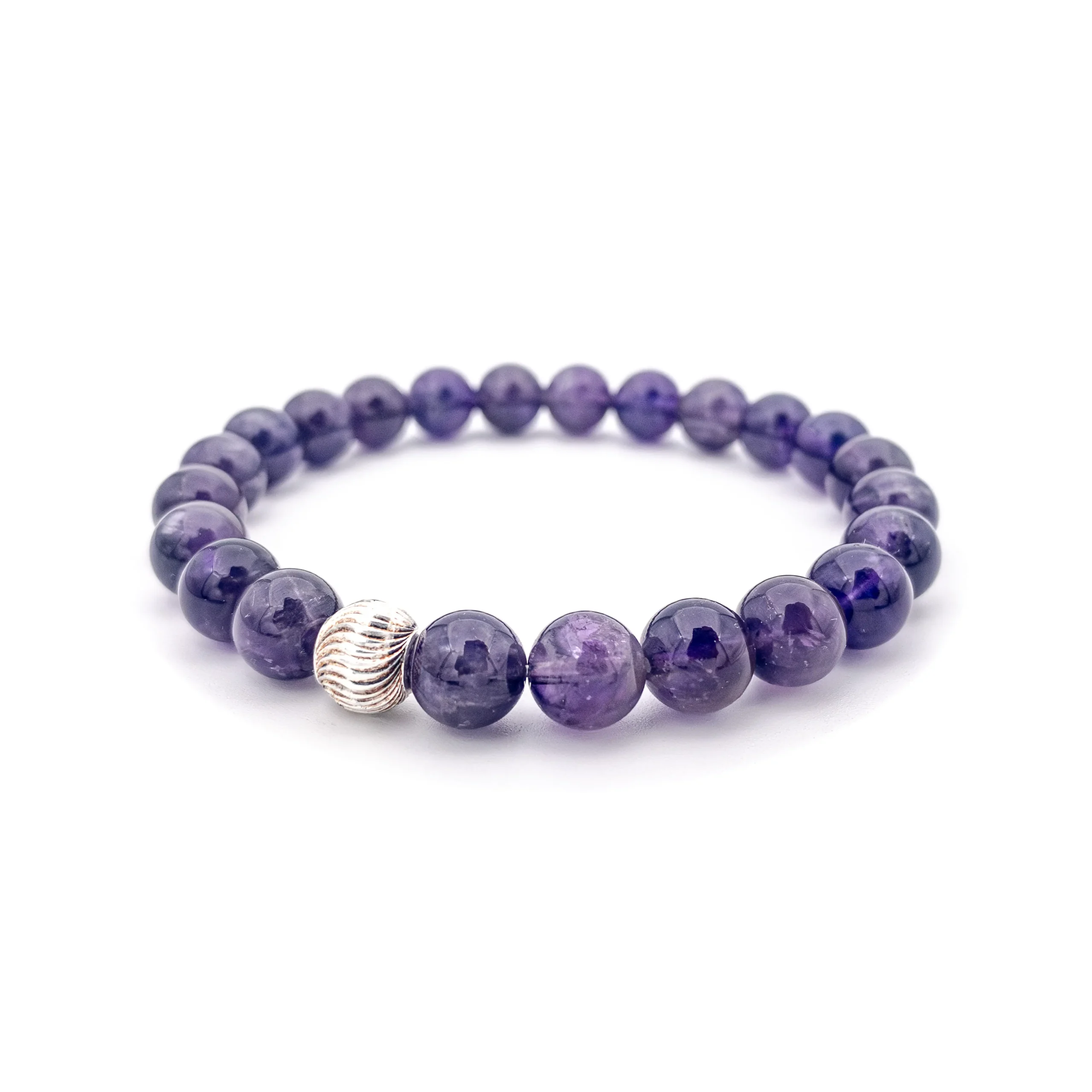Ametist, morun farklı tonlarını zarif biçimde yansıtan doğal bir taştır. Işığa göre değişen yarı saydam yapısı, her taneye kendine özgü bir karakter kazandırır ve sakin bir derinlik hissi oluşturur.