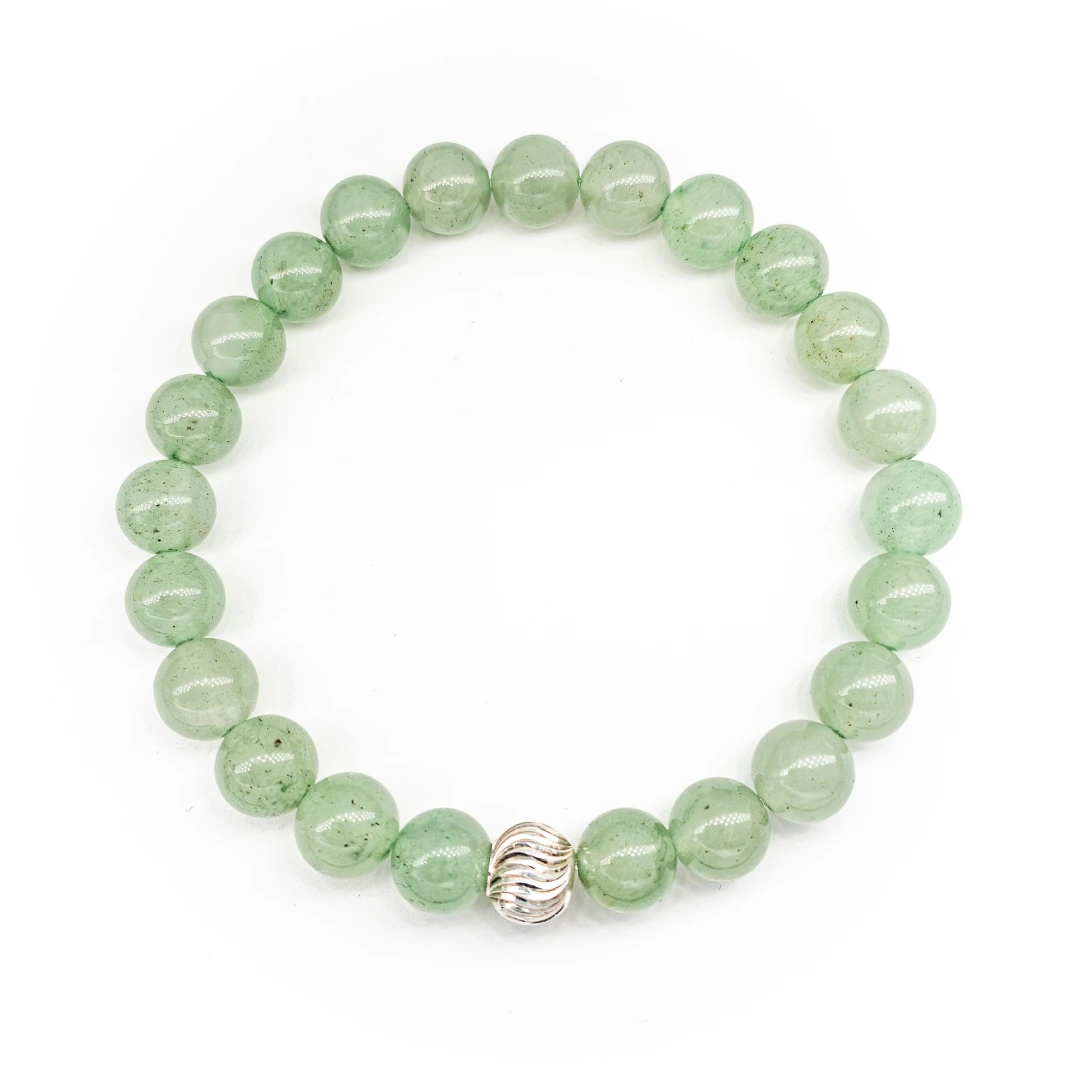 Doğanın derin yeşil tonlarını barındıran Aventurin, kristal yapısındaki doğal mineral parıltılarıyla stilinize dinamik bir hava katmak için tasarlandı. Standart mat taşların aksine; ışıkla buluştuğunda ortaya çıkan o kendinden ışıltılı ve canlı dokusu, bu bilekliği sıradanlıktan uzaklaştırır.