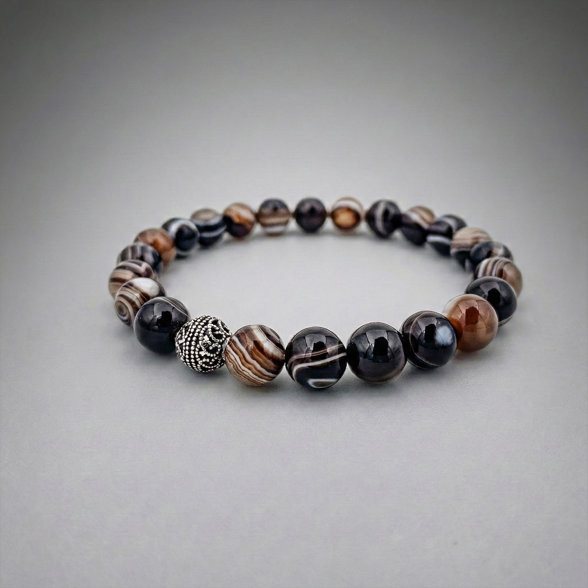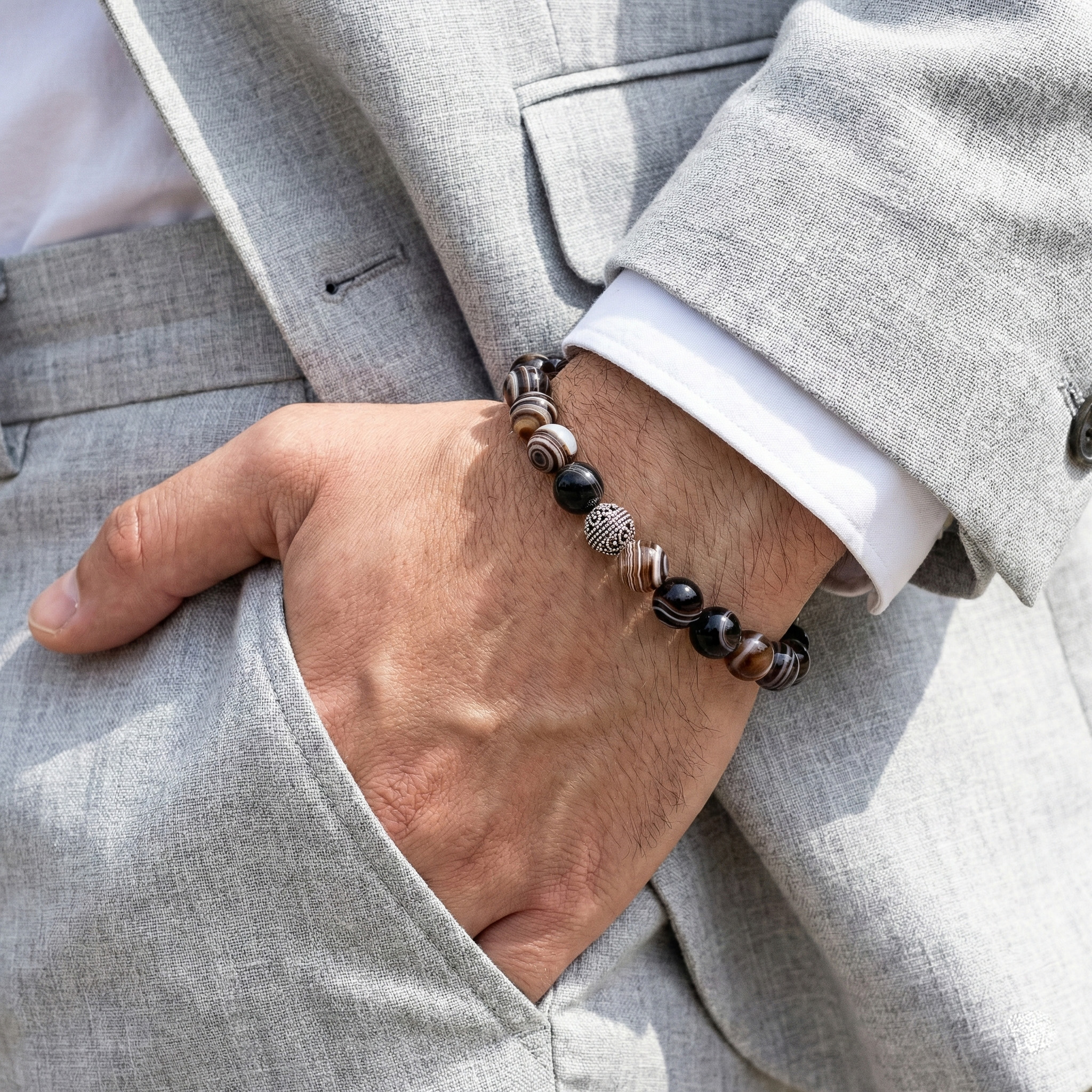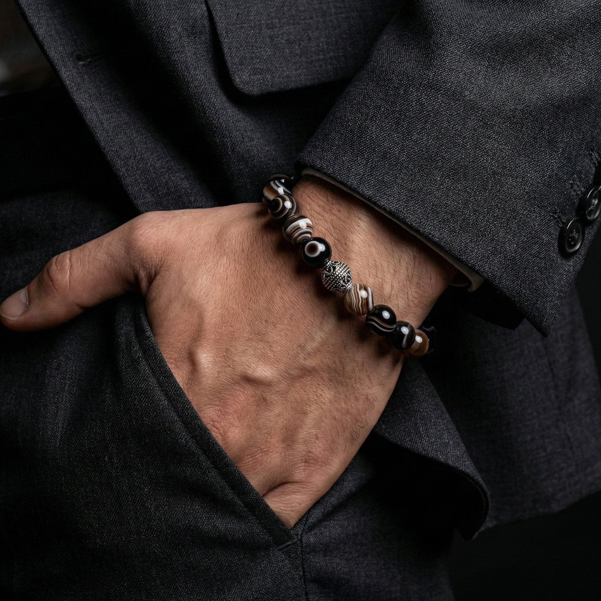 Doğanın milyonlarca yılda katman katman işlediği Göz Akik’in (Süleyman Taşı) siyah, kahve ve gri geçişleri, stilinize maskülen bir derinlik katmak için tasarlandı. Standart fabrikasyon ürünlerin aksine; her boncukta farklılaşan o meşhur hareler ve doğal desenler, bu bilekliği sadece size özel kılar.