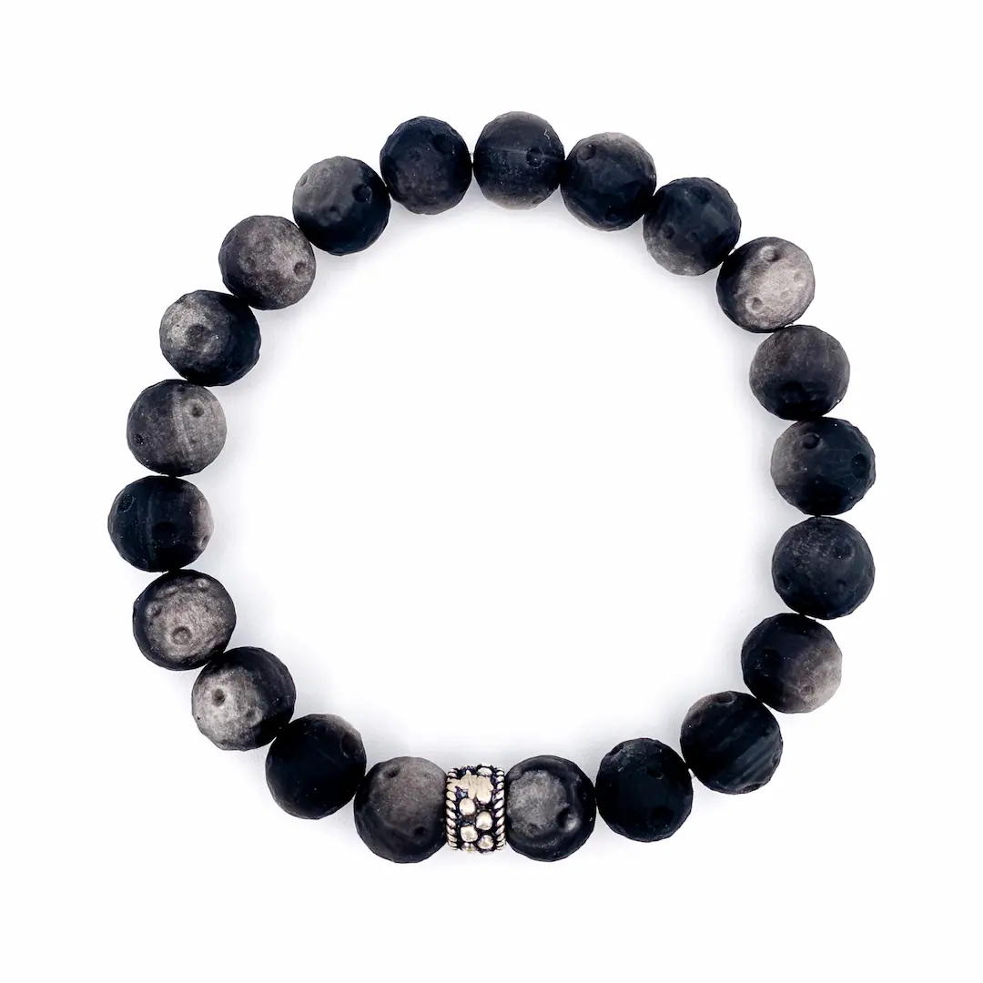 Doğanın kalbinden, volkanik lavların hızla soğumasıyla oluşan Obsidyen’in en ham, en maskülen haliyle tanışın. Alışılmış parlak ve fabrikasyon taşların aksine; bu tasarımda taşın o doğal, cilalanmamış mat dokusunu özellikle ön plana çıkardık. Her bir boncuğun üzerindeki o eşsiz dokular ve koyu gri/siyah geçişler, stilinize gizemli ve güçlü bir derinlik katar.