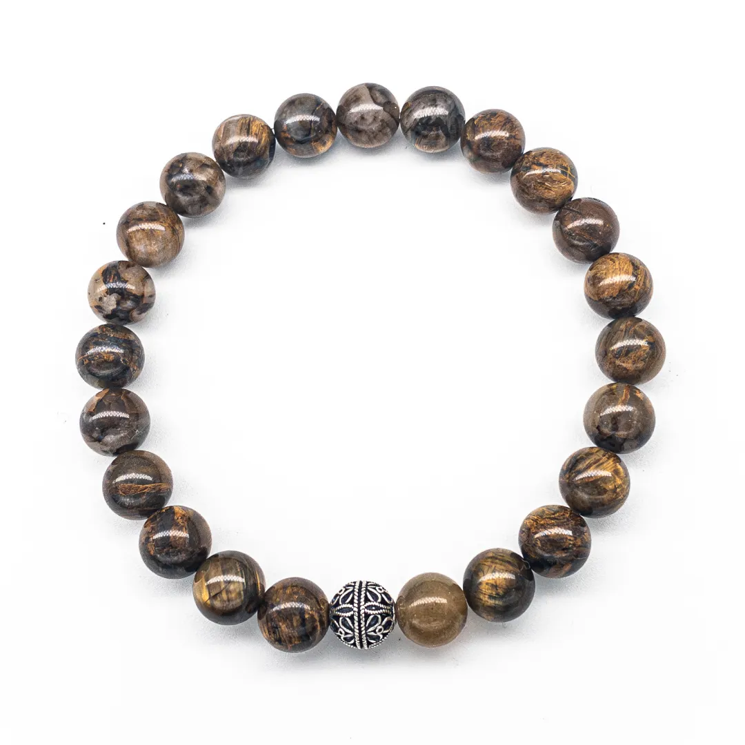 Pietersit, kahverengi ve altın tonlarının doğal karışımıyla bilinen nadir bir kuvars çeşididir. Yüzeyindeki hareketli desenler sayesinde her parça kendine özgüdür.