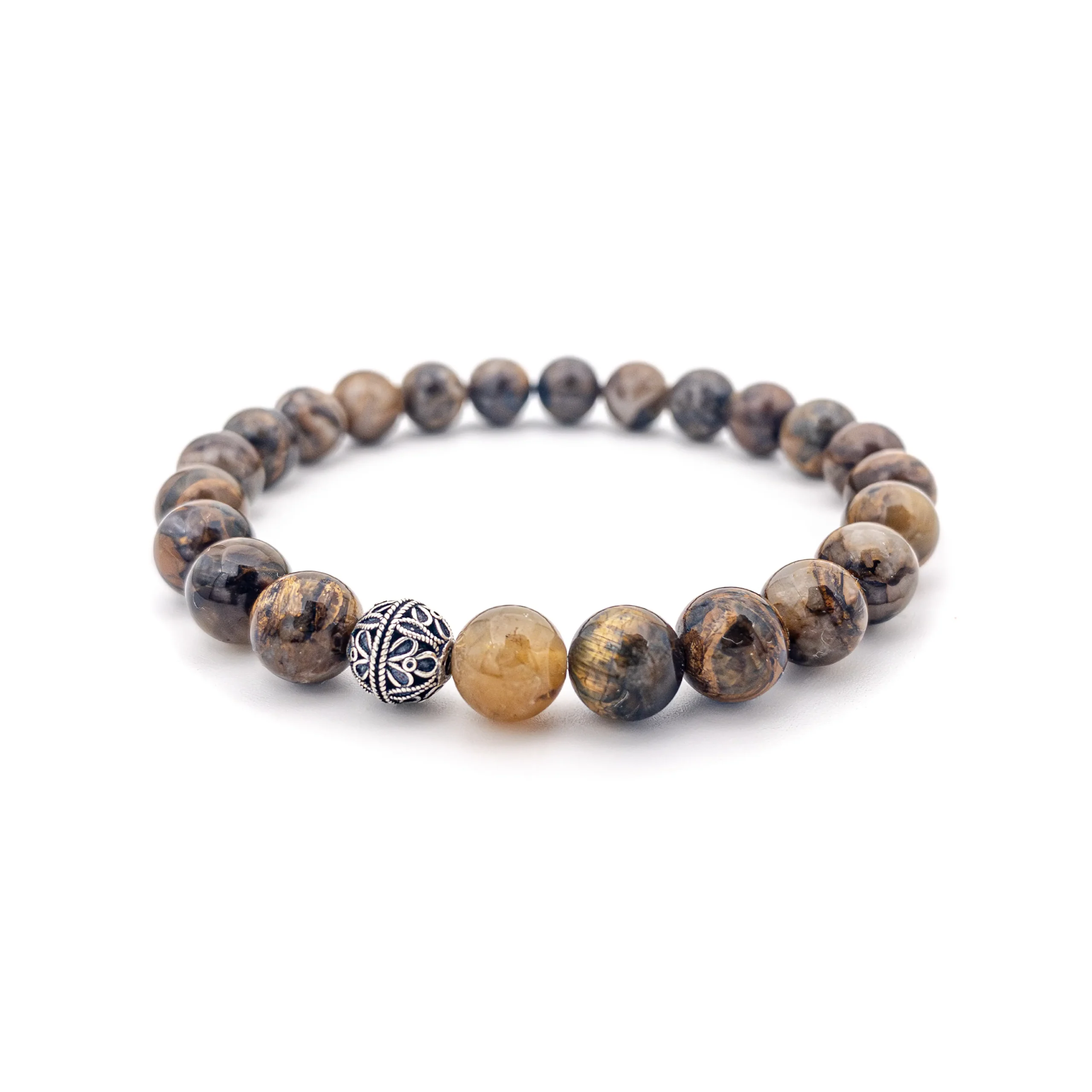 8 mm ölçüsündeki taşlar, tasarımı tamamlayan 925 ayar gümüş dokunuş ile yüksek dayanımlı esnek ip üzerine dizilerek bileğinize özel hazırlanır.
